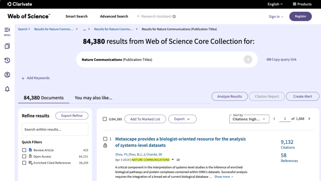 A screenshot taken from https://www.webofscience.com on Mar 29, 2026.