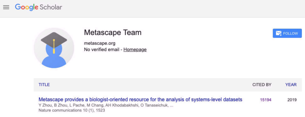 Today, Google Scholar reports over 15,000 citations for the Metascape paper.